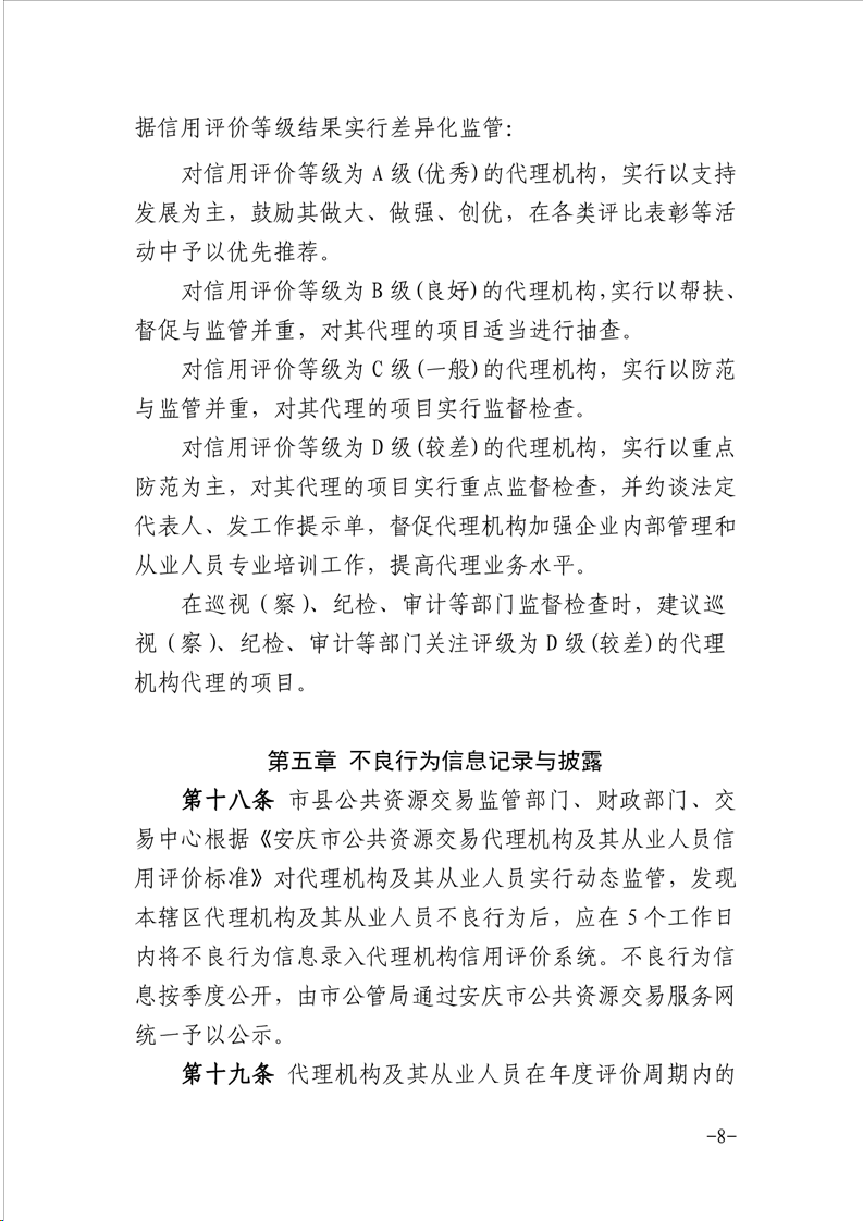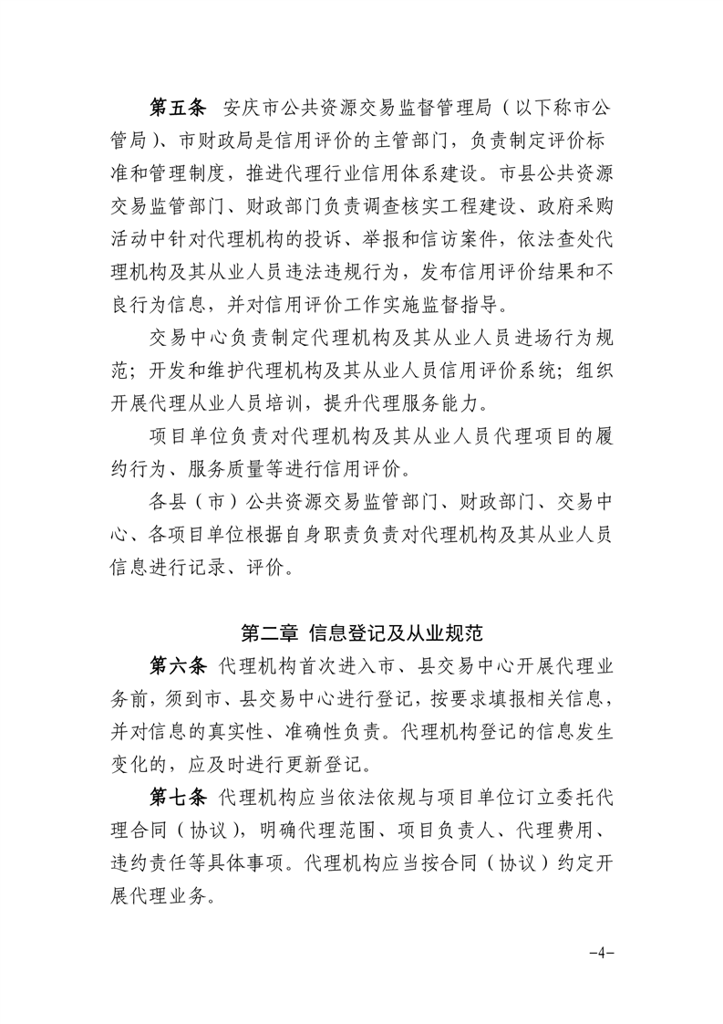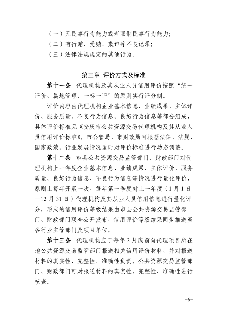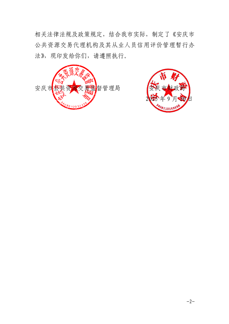 安慶市公管局 安慶市財政局關(guān)于印發(fā)《安慶市公共資源交易代理機(jī)構(gòu)及其從業(yè)人員信用評價管理暫行辦法》的通知