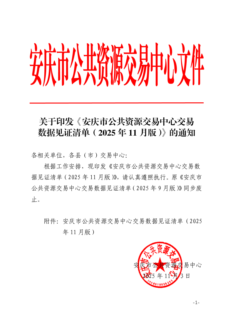 關(guān)于印發(fā)《安慶市公共資源交易中心交易數(shù)據(jù)見(jiàn)證清單(2025年11月版)》的通知